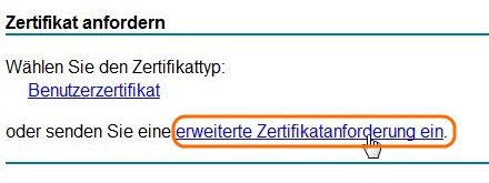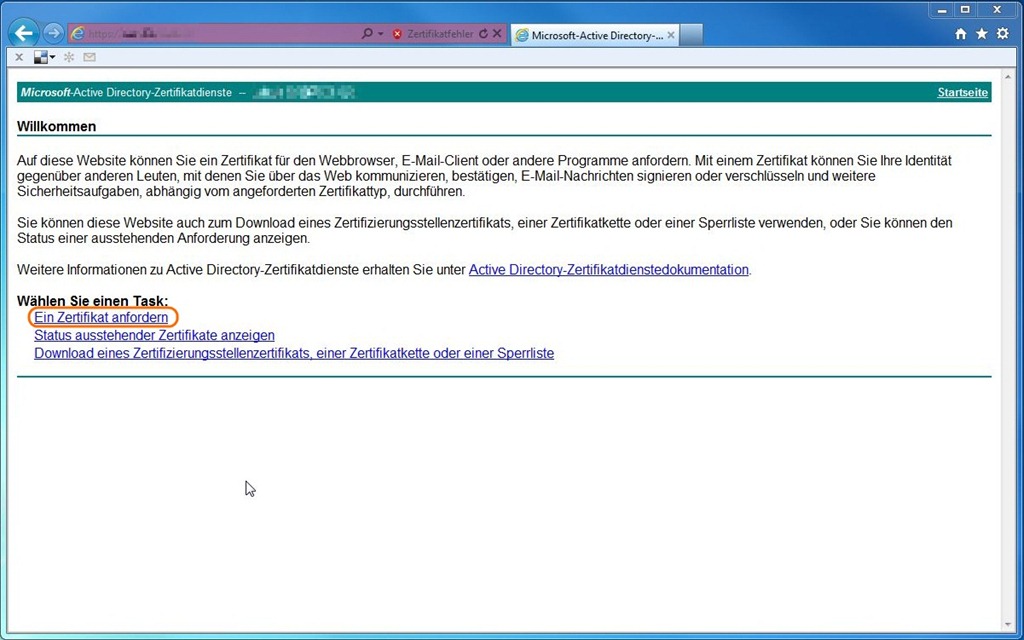 Nun kann man über https://servername/certsrv ein Zertifikat anfordern: