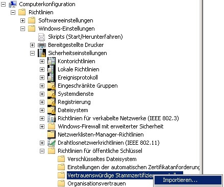 Am besten verteilt man das Zertifikat aber über die Gruppenrichtlinien: