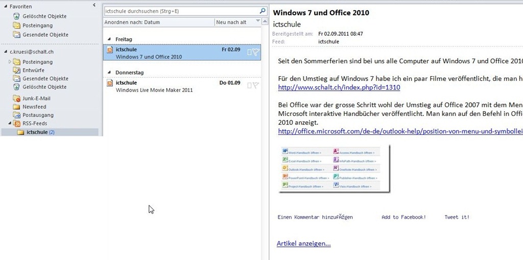Ich persönlich bevorzuge Outlook, um auch über die neuesten Artikel in den von mir verfolgten Blogs informiert zu werden.