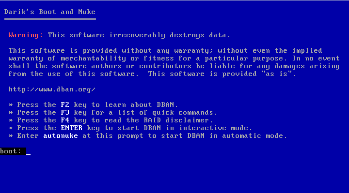 Mit Enter startet man nun DBAN ![]()