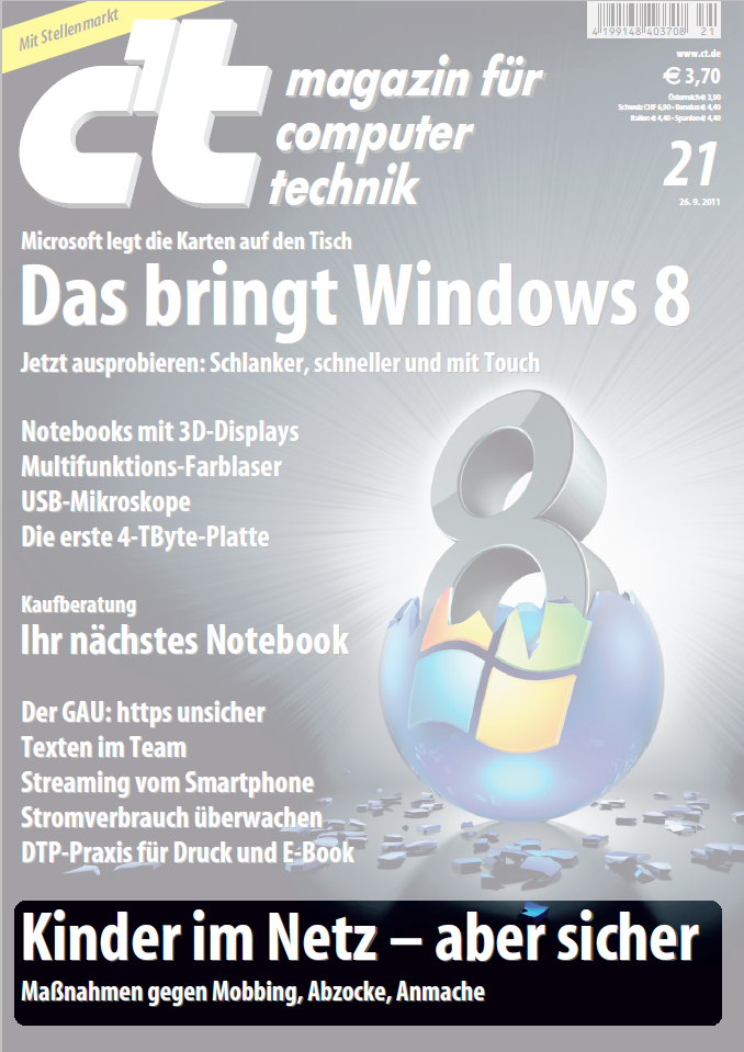 Nach Anfragen von Pädagogen hat die Computerzeitschrift c’t beschlossen, ihre Artikel zu Medienerziehung für öffentliche Schulen zur freien Verfügung zu stellen. Man hat also die Erlaubnis, die vollständigen Artikel beispielsweise bei einem Elternanlass abzugeben. Beide Artikel bieten eine praktische Druckansicht für einen solchen Zweck.