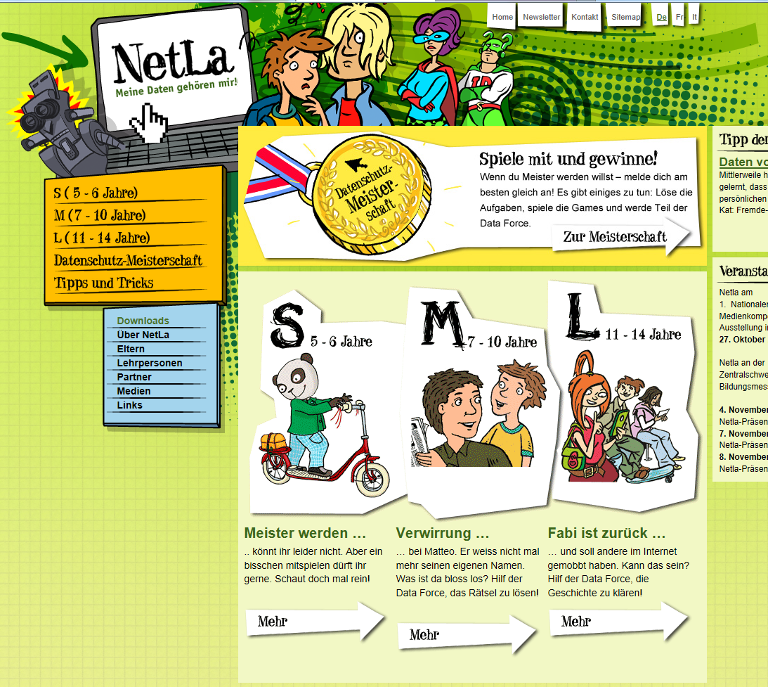 NetLa – Meine Daten gehören mir!“ ist eine nationale Kampagne, initiiert vom Rat für Persönlichkeitsschutz. Sie steht unter der Schirmherrschaft von Hanspeter Thür, dem Eidgenössischen Datenschutz- und Öffentlichkeitsbeauftragten (EDÖB).