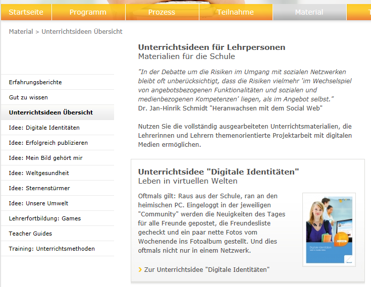 Auch verschiedene Materialien zu Unterrichtsideen werden angeboten.