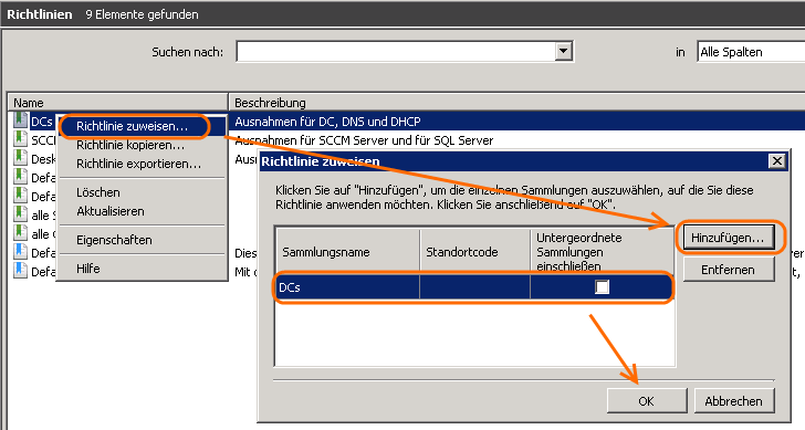 Nun muss man diese Richtlinie nur noch der entsprechend vorbereiteten Sammlung zuweisen.