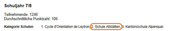 Nun wurde unsere Schule sogar 2. in der Kategorie Schuljahr 7/8