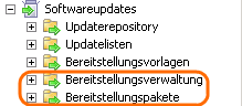 Zuerst suche ich die entsprechenden Updates (Softwareupdates -> Updaterepository -> Suchordner -> „selbst erstellter Suchordner z.B. Windows 7 letzter Monat“). Wenn man nun die noch nicht bereitgestellten markiert, kann man rechts im Fenster Aktionen „Softwareupdates herunterladen“ auswählen. Nun öffnet sich ein Assistent. Beim ersten Mal kann man hier ein „Neues Bereitstellungspaket erstellen“, beim nächsten Mal kann man „Bereitstellungspaket auswählen“. Dieses hier erstellte Bereitstellungspaket findet sich danach unter Softwareupdates -> Bereitstellungspakete.