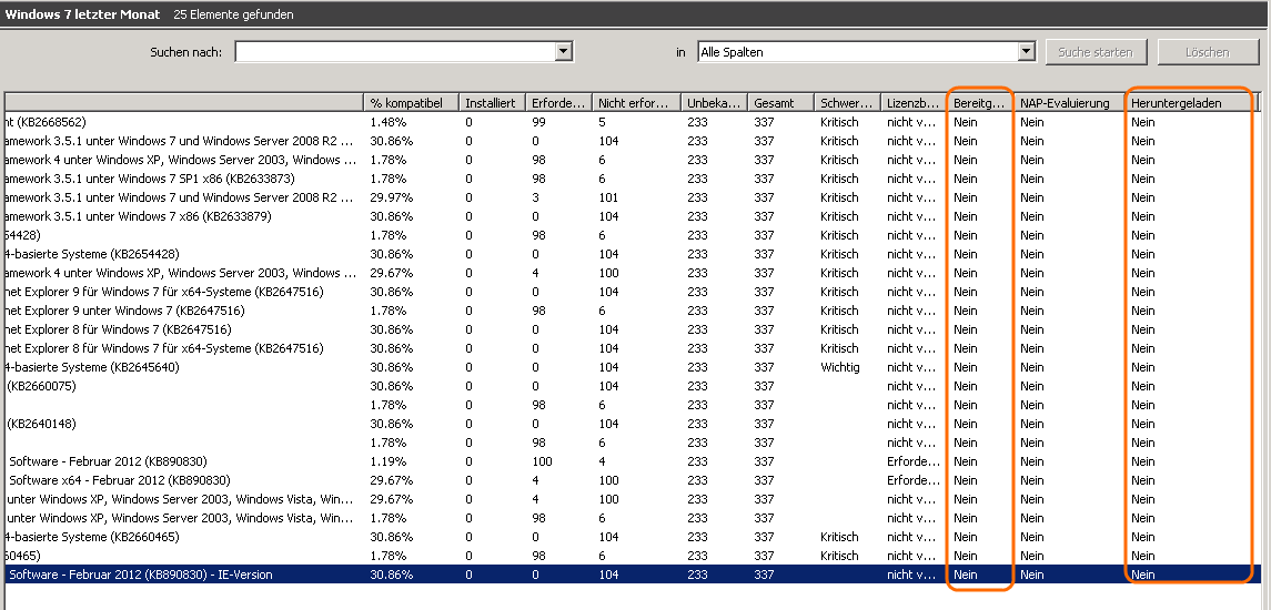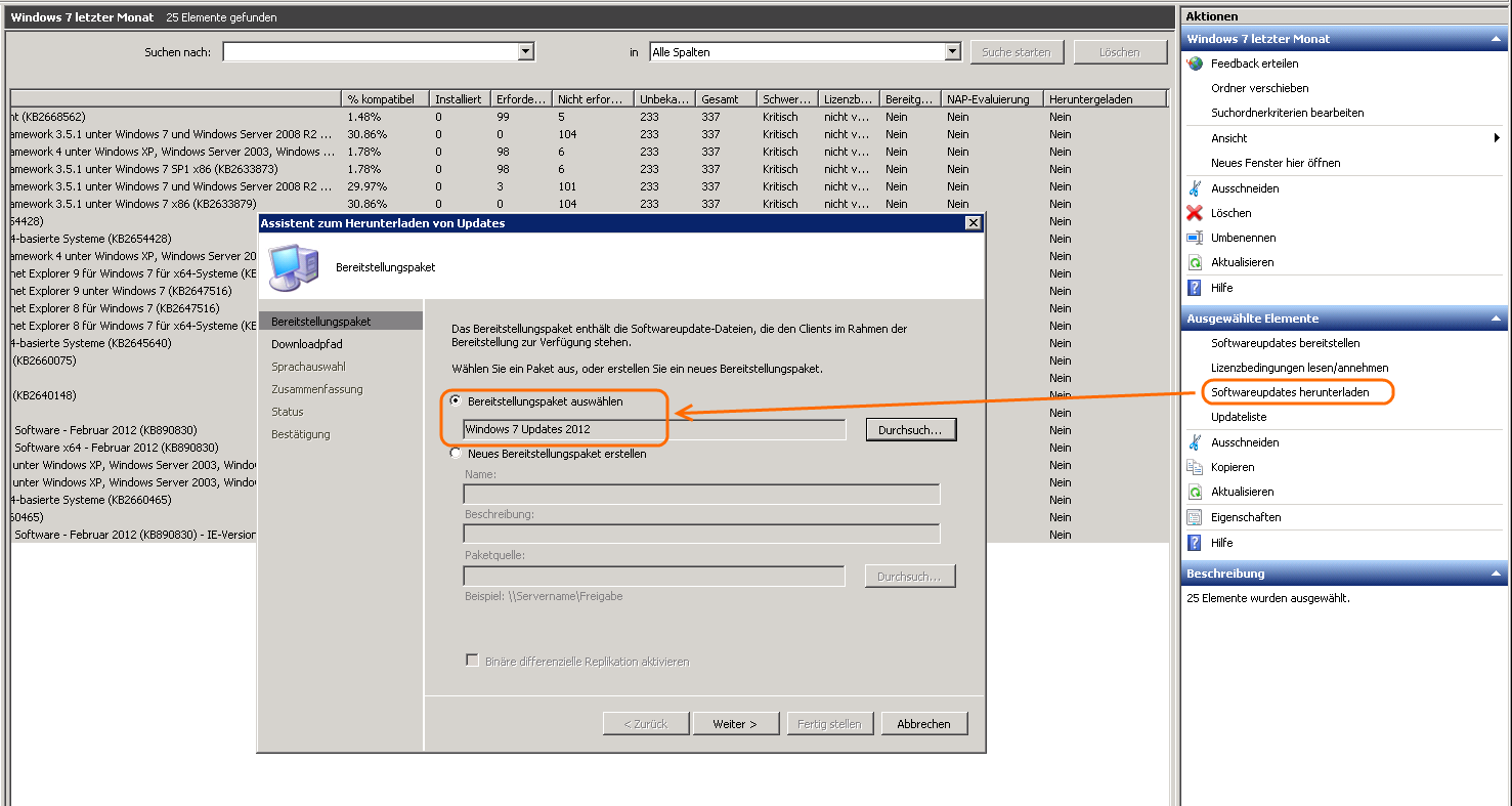 Unter “Bereitstellungsverwaltung” und “Bereitstellungspakete” habe ich je einen Eintrag für “Windows 7 Updates 2012”