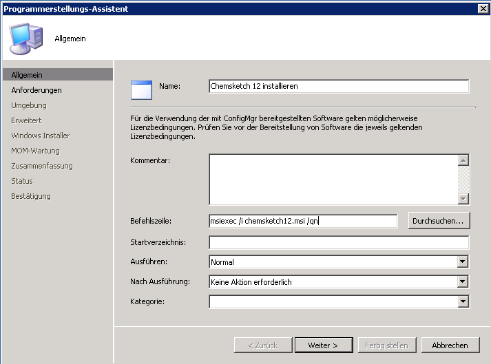 Um Chemsketch zu verteilen, kann man mit dem /a Schalter eine administrative Installation durchführen.
