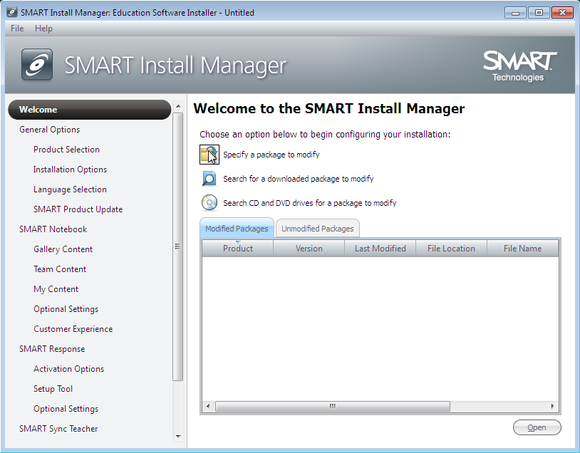 Gemäss dem “Handbuch für Systemadministratoren” habe ich in einer virtuellen Maschine den Install Manager installiert. Über “Specify a package to modify” kann man die heruntergeladene “Smart Education Software” anpassen.