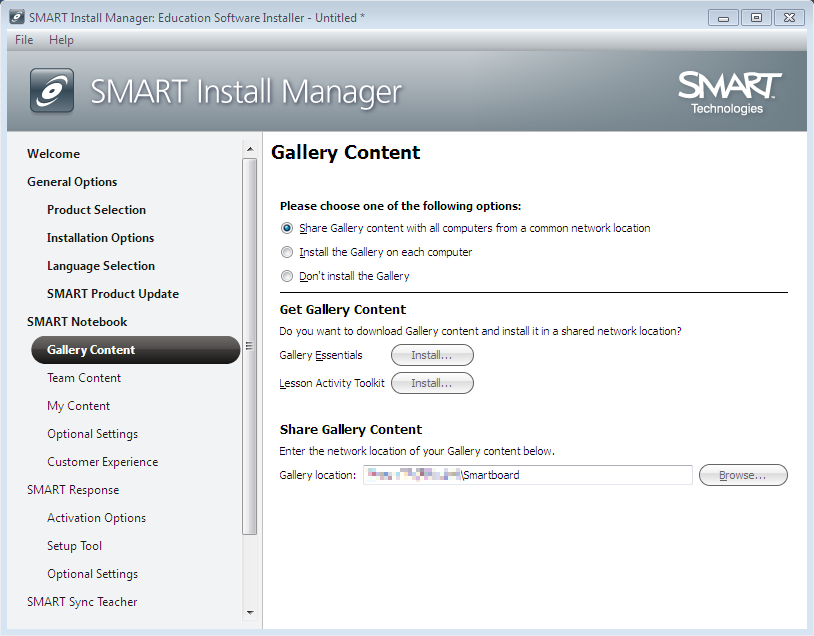 (nach Angabe des Pfades Gallery Essentials und Lesson Activity Toolkit installieren)