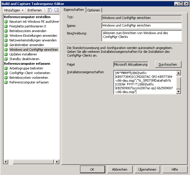 Nun kann man die Tasksequenz bei “Windows und ConfigMgr einrichten” folgendermassen ergänzen: