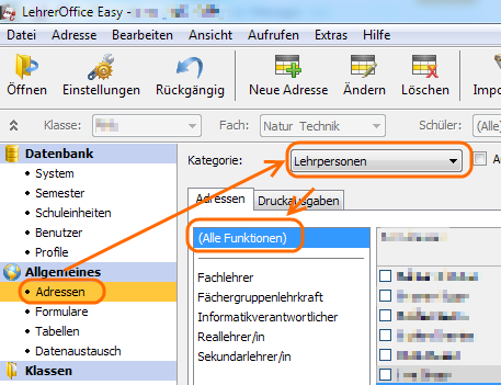 Diese beiden Dateien erstelle ich aus Lehreroffice. Für die Lehrkräfte wählt man “Adressen” unter “Allgemeines”. Allenfalls muss man noch unter Ansicht “Alles” auswählen. Nun kann man die ganze Tabelle über “Bearbeiten” –> “Tabelle kopieren” in Excel einfügen und die nicht gebrauchten Spalten löschen.