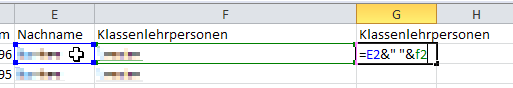 Leider stehen bei den Schüler/-innen die Namen der Lehrpersonen in der falschen Reihenfolge Vorname/Nachname. Man kann diese Spalte also nochmals trennen und dann andersrum wieder zusammenführen.