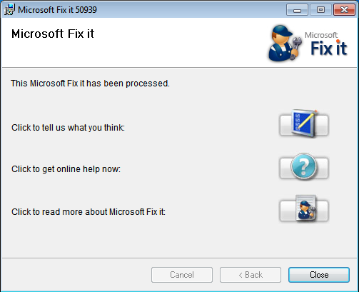 Man kann den Fix über den normalen Weg zur Softwareverteilung installieren. Entweder über Gruppenrichtlinien oder über eine andere Lösung wie SCCM mit “msiexec /i MicrosoftFixit50939.msi /qn”