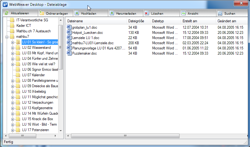 So erhält man nun die eigene Dateiablage und alle Dateiablagen der Gruppen und Klassen in denen man Mitglied ist in einem explorer-ähnlichen Fenster.