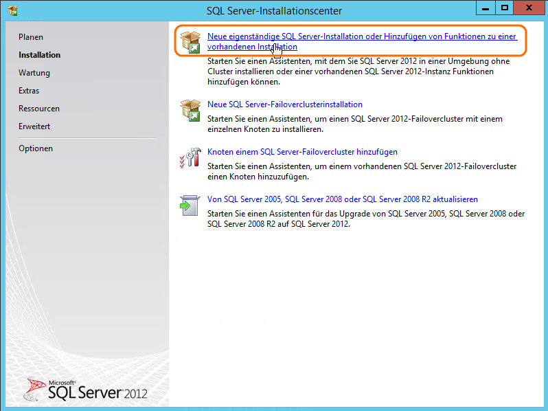 Zuerst muss man SQL installieren, zumindest ist es bei mir nicht gelungen, die Installation von SQL aus der Installation von DPM zu starten.