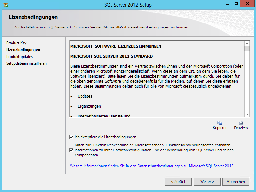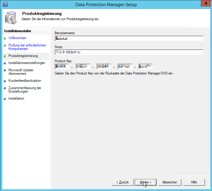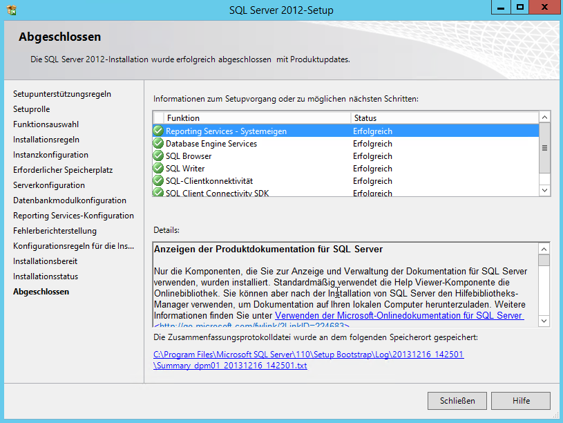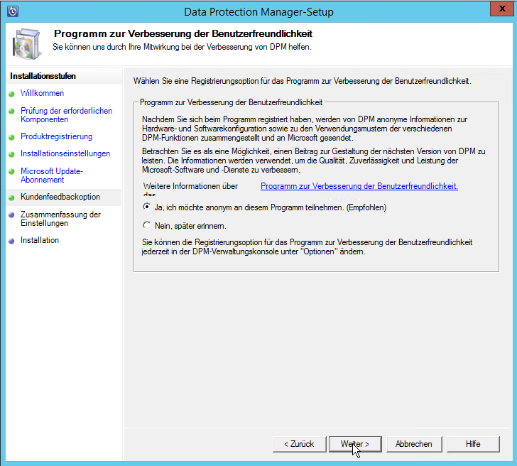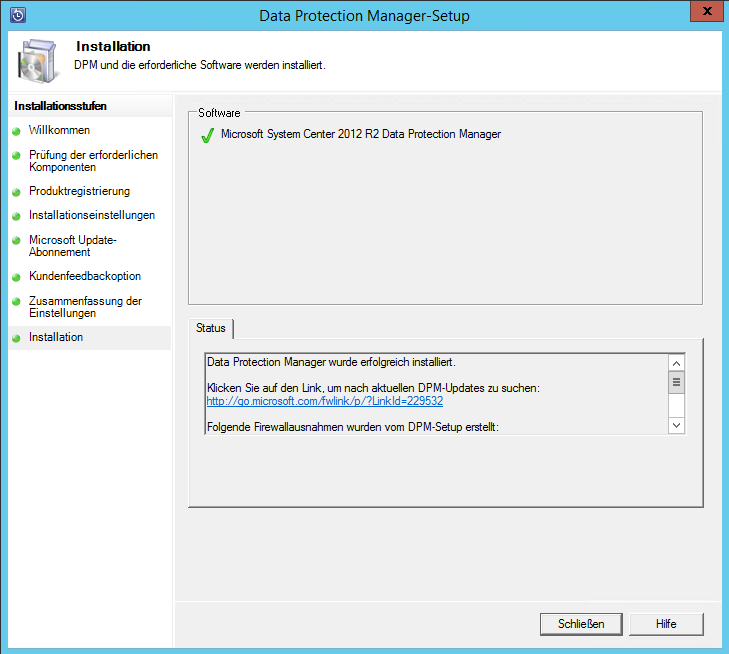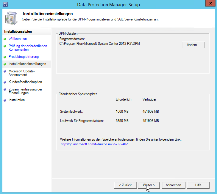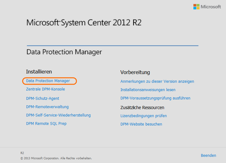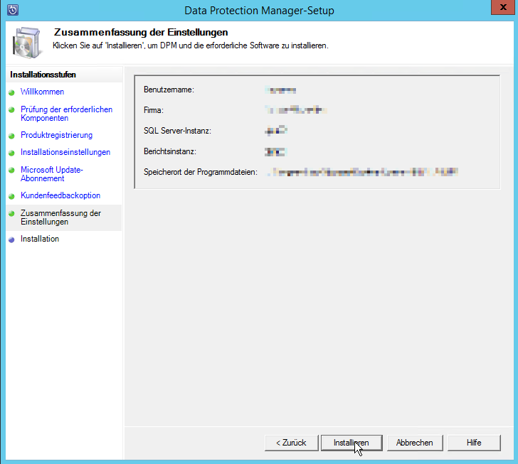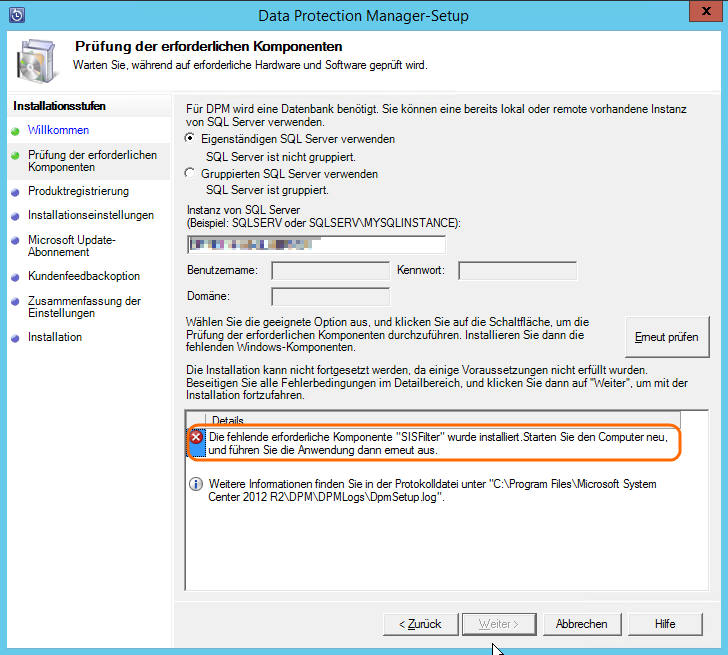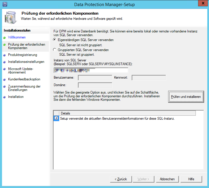 Nachdem nun SQL installiert ist, lässt sich DPM installieren.