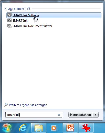 In Powerpoint funktionieren aber leider die Folienübergänge nicht mehr korrekt, wenn man Smart Ink aktiviert hat. In diesem Fall kann man es sehr einfach deaktivieren. Entweder öffnet man über den Startbutton die “Smart Ink Settings” oder …