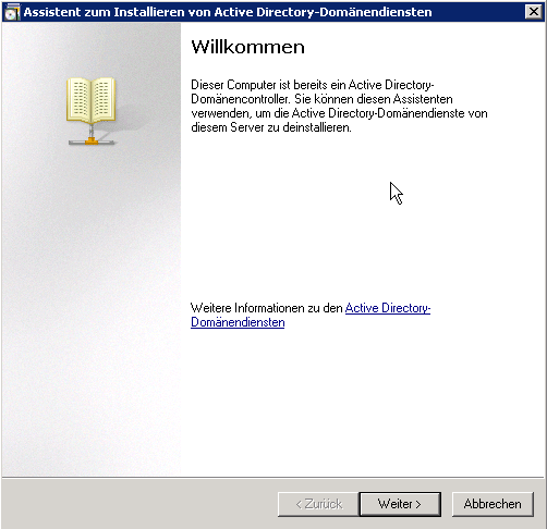 Wenn man den Servermanager zum Entfernen der Active Directory Domänendienste verwenden möchte, bringt er eine Meldung, dass man dafür dcpromo verwenden soll.