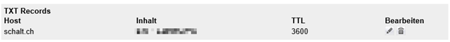 Gemäss der Anleitung erstellt man einen TXT Eintrag für die Domäne. Durch einen Klick ganz unten wird der Eintrag überprüft.
