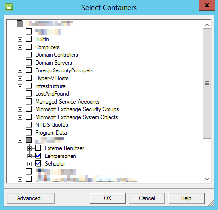 Hier kann man nun alle Häklein ausser bei den gewünschten OU’s entfernen.