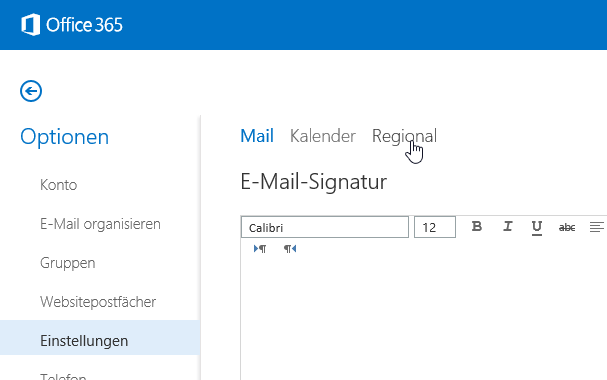 Dazu muss man bei Outlook Web App (OWA) zu den “Optionen” und dort zu “Einstellungen” wechseln.