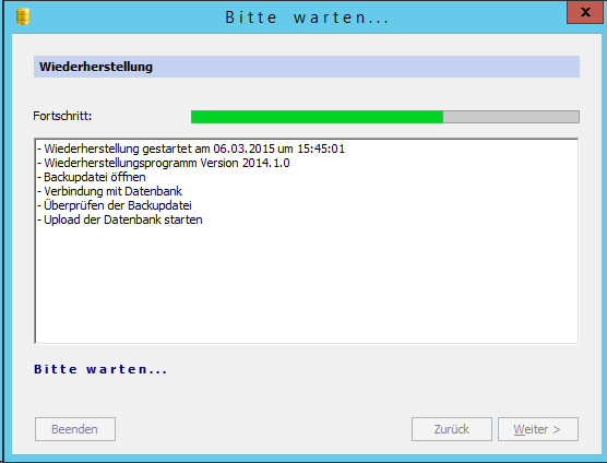 Nun kann man direkt die Backups vom alten Server einspielen.