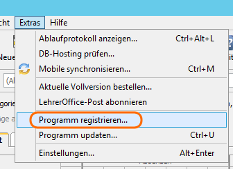 Obwohl ich im Datenbankprogramm schon die Lizenzdaten eingetragen habe, zeigt es in Lehreroffice Easy nochmals an, dass ich eine Demoversion verwende.