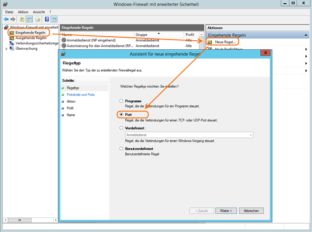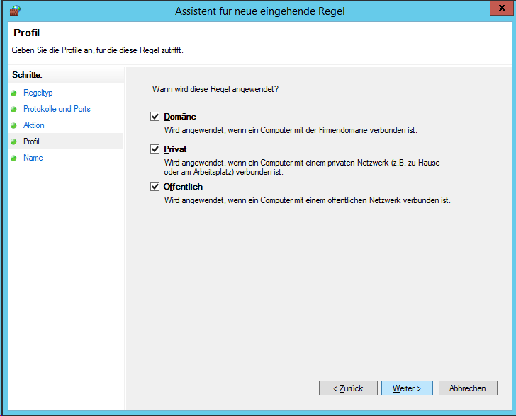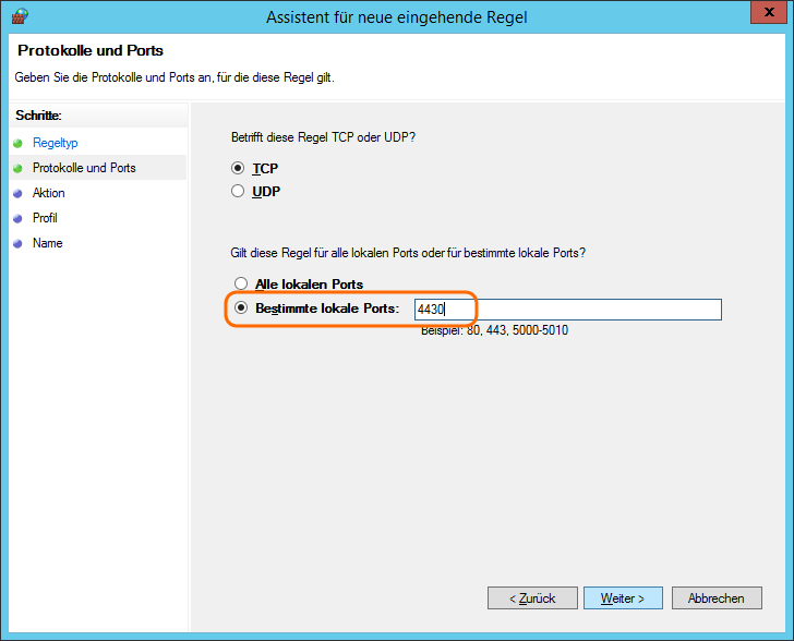 Damit man von den PC’s das Programm auf dem Server benutzen kann, muss man auf dem Server noch den Port 4430 als Firewallausnahme hinzufügen.