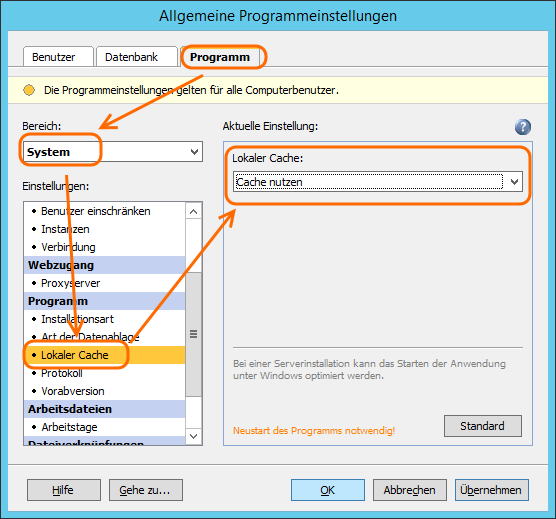 Leider dauert der Programmstart übers Netzwerk auch auf einem neuen Server so immer noch viel zu lange. Lehreroffice hat aus diesem Grund die Möglichkeit vorgesehen, einen lokalen Cache auf den Clients einzusetzen.