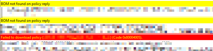 Failed to download policy {irgendeine Nummer} (Code 0x80004005).