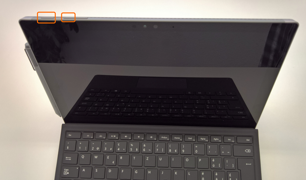 Um beim Surface Pro 4 in die UEFI Einstellungen zu kommen, muss man es mit gedrückter “Lauter-Taste” aufstarten. Sobald das Surface-Logo angezeigt wird, kann man die “Lauter-Taste” loslassen.