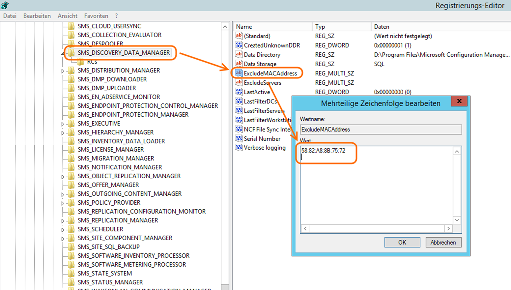 HKLM\SOFTWARE\Microsoft\SMS\Components \SMS_DISCOVERY_DATA_MANAGER\ExcludeMACAddress