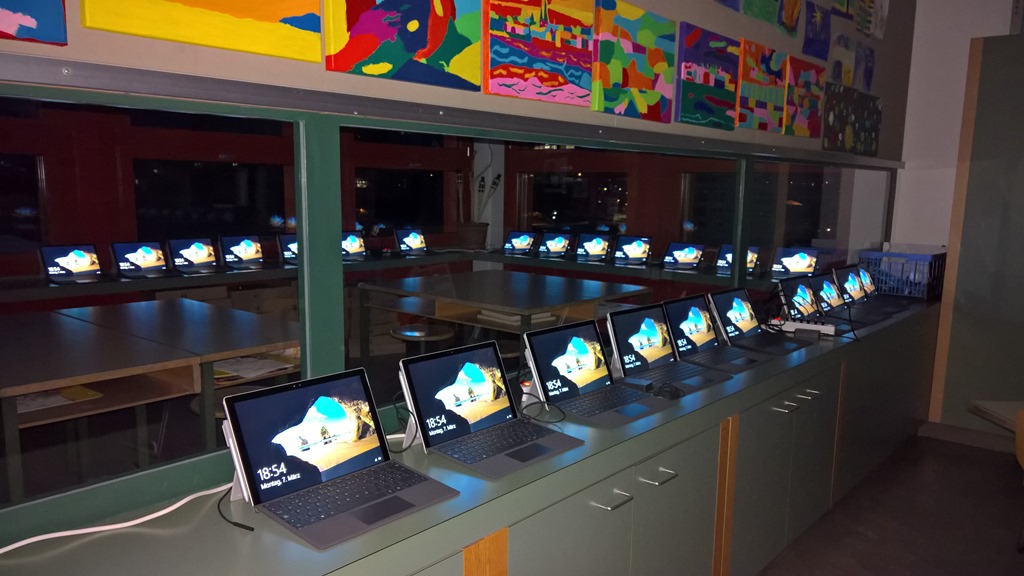 Nun ist es soweit. Es sind fast alle 175 neuen Surfaces Pro 4 mit Windows 10 Education aufgesetzt und verteilt resp. die letzten nun auch bereit zum Verteilen.
