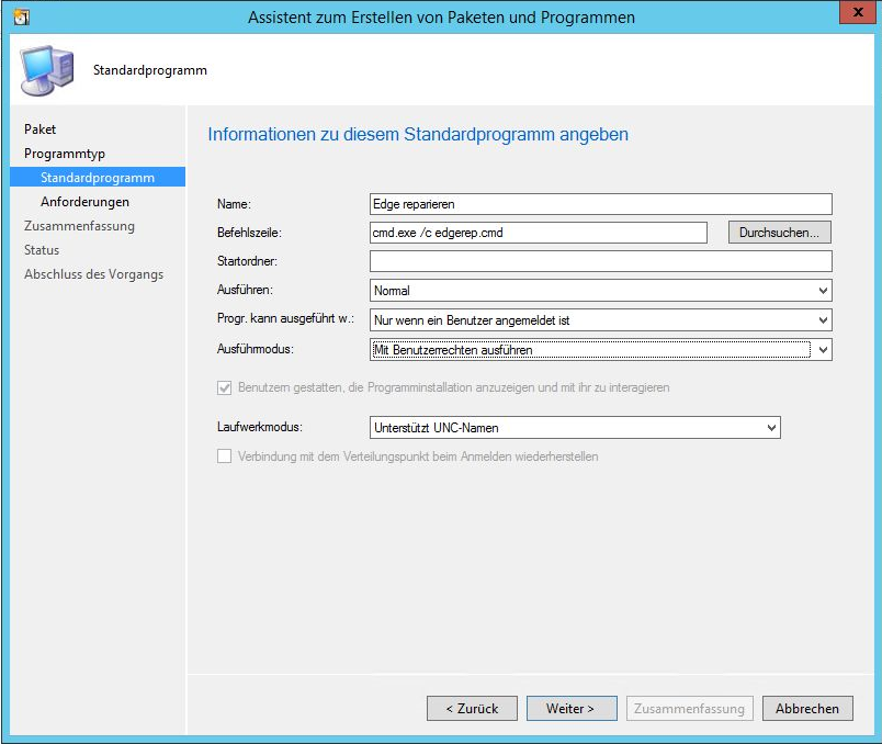 Dieses Paket kann man nun für alle Computer bereitstellen. Betroffene Benutzer können dann über das Softwarecenter das Programm ausführen.