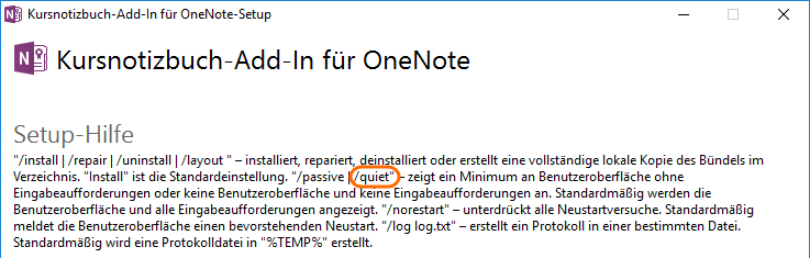 Komfortabler ist es natürlich, wenn das Add-In für alle Lehrpersonen automatisch installiert wird. Dazu kann man es mit dem Schalter /quiet verteilen.