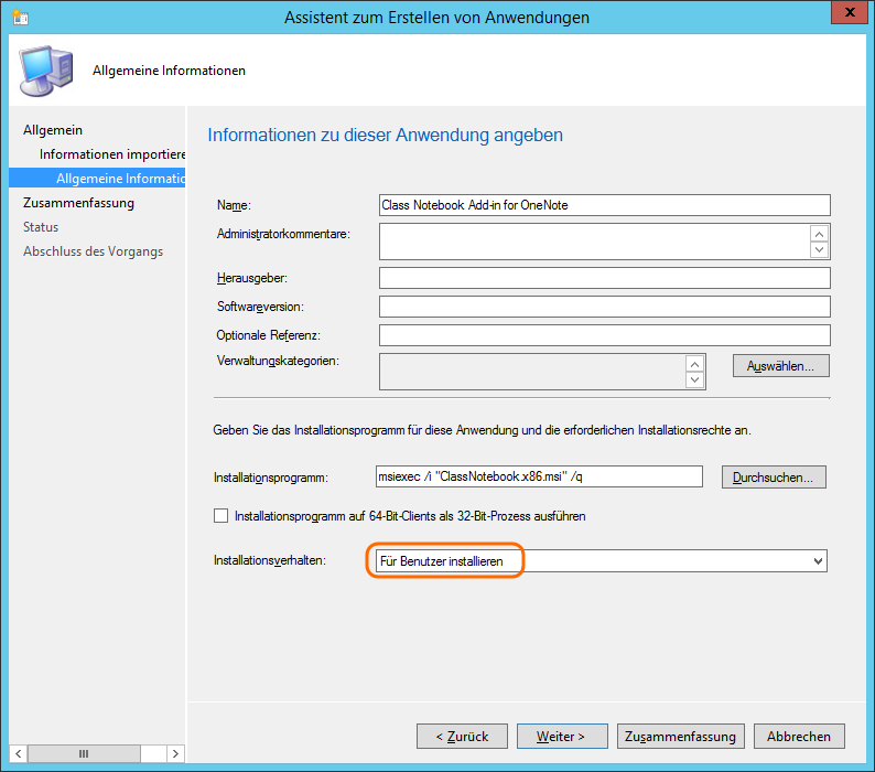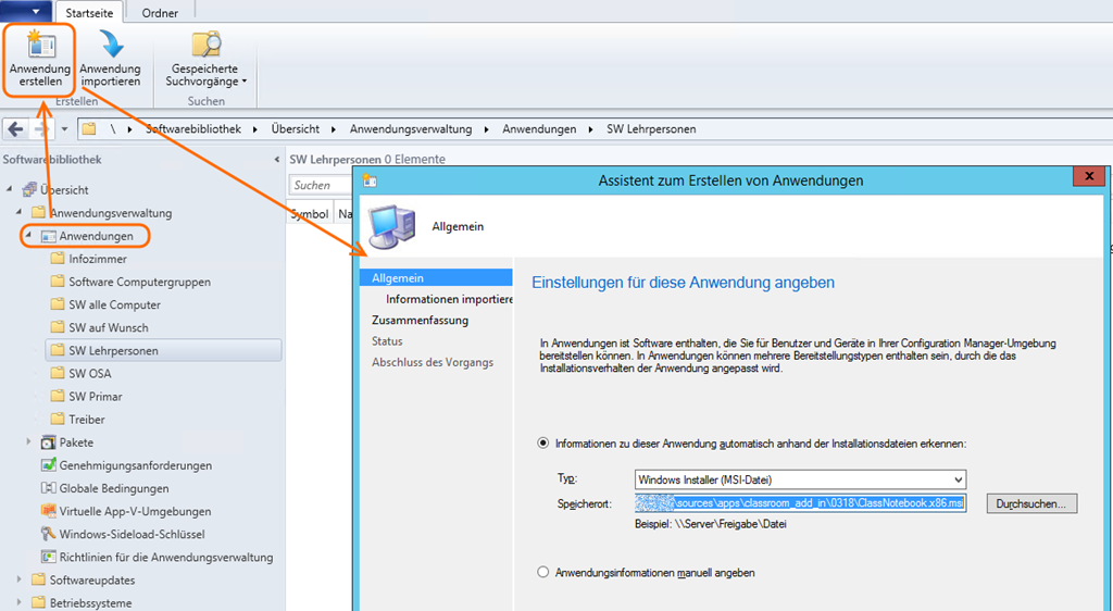 Um dieses mit SCCM zu verteilen, kopiert man es in den Ordner mit den Originaldateien und erstellt eine neue Anwendung.