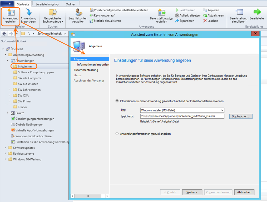Nun kopiert man die Daten auf den SCCM Server und erstellt eine neue Anwendung.