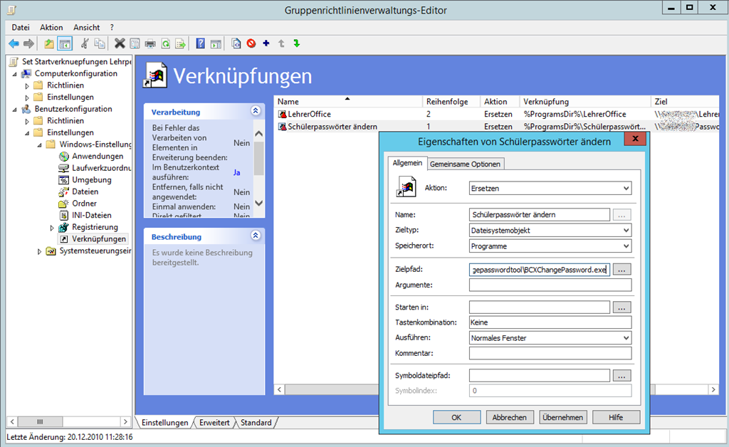 Nun muss man noch eine Verknüpfung für die Lehrkräfte erstellen. Ich habe einfach die Verknüpfung des alten Programms auf dem alten Server abgeändert.