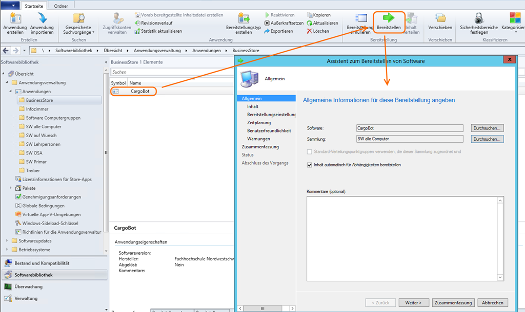 Danach findet sich die App unter Anwendungen und kann von dort wie “normale” Anwendungen einer Gruppe von Computern oder Benutzern bereitgestellt werden. In diesem Beispiel installiere ich die App für eine Computergruppe.
