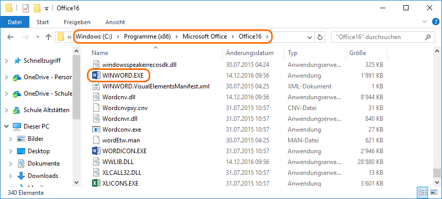 Vereinfacht gesagt, gehört ein Programm in den Unterordner c:\programme oder c:\programme (x86). Somit muss es für alle Benutzer nur einmal auf dem Computer installiert werden. Einstellungen pro Benutzer können dann unter seinem Benutzerprofil im AppData Ordner abgelegt werden. So ist z.B. Word unter c:\Programme (x86)\Microsoft Office\Office16\WINWORD.EXE abgelegt.