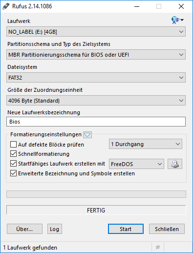 Um einen bootfähigen USB-Stick zu erstellen kann man Rufus herunterladen und starten.