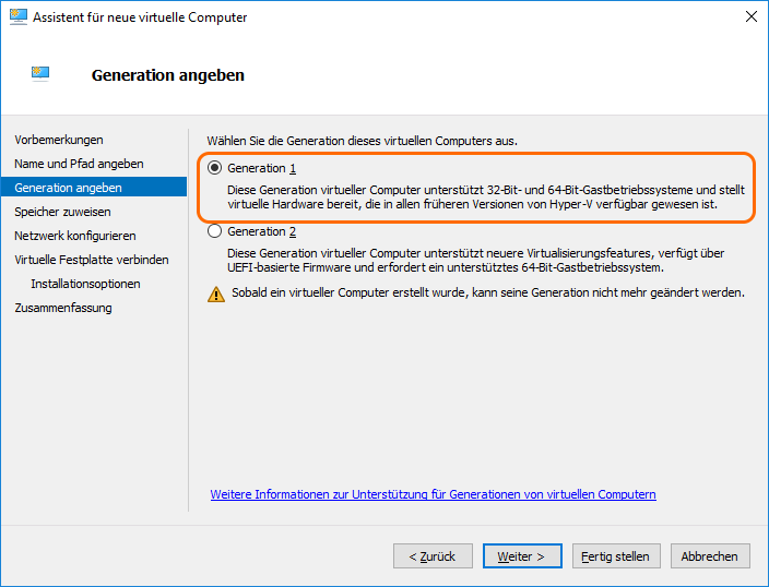Scheinbar handelt es sich um einen Bug. Zumindest haben andere das gleiche Problem. Wenn man die virtuelle Maschine im gleichen VLAN wie die Server betreibt, funktioniert es auch mit Gen 2 Maschinen. Bis der Bug behoben ist, kann man so das Problem umgehen.
