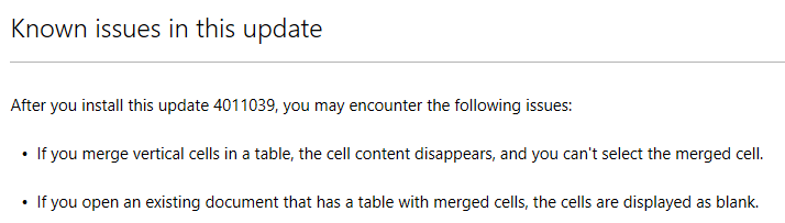 Leider kann man auf diesem Weg ein Office Update nicht deinstallieren. Ich wollte das Update KB4011039 deinstallieren, bei dem es Probleme mit verbundenen Zellen in Word gibt.