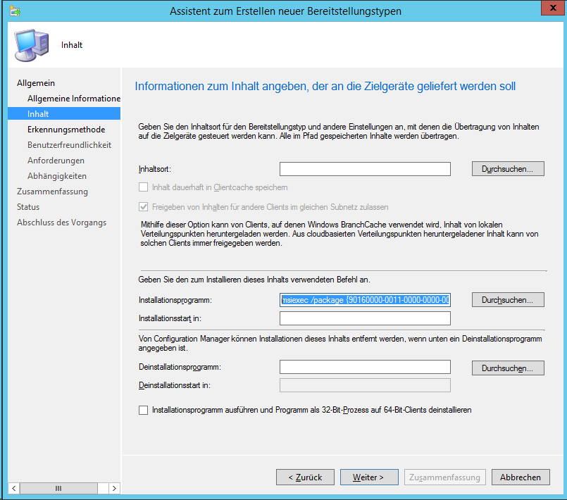 Um dies mit SCCM zu automatisieren, gibt es verschiedene Wege. Der meiner Meinung nach beste ist es, eine Anwendung zu erstellen.