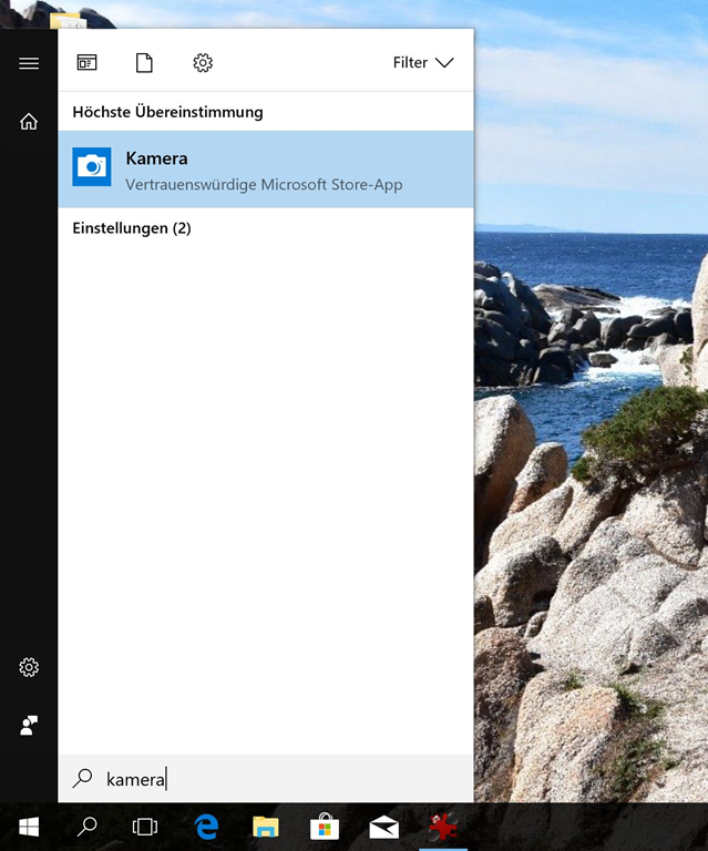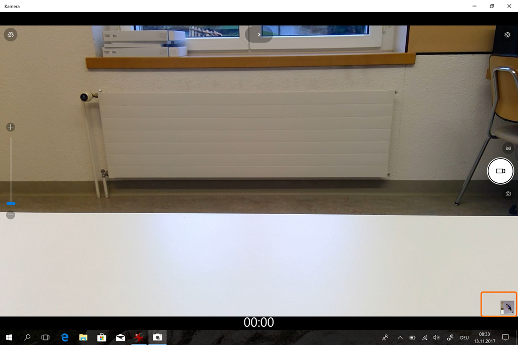 Windows 10 bringt diese Funktionalität mit der Kamera- und der Fotos-App bereits mit. Zum Aufnehmen muss man die Kamera App starten.
