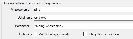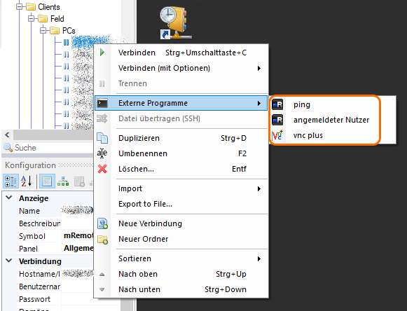 Man kann einen Standardbenutzer definieren, mit dem verbunden werden soll, wenn kein Benutzername/Passwort angegeben wird. Was mir besonders gut gefällt, ist, dass sich neben Remote Desktop Verbindungen auch noch weitere externe Programme einbinden lassen. Diese lassen sich über einen Rechtsklick –> Externe Programme starten und über “Extras” –> “Externe Programme” erstellen und bearbeiten.