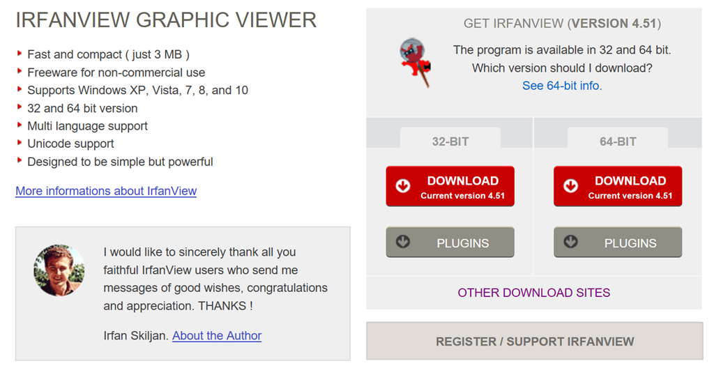 Irfanview ist ein kleiner, schneller Bildbetrachter, mit dem man auch kleine einfache Korrekturen vornehmen kann. Ausserdem kann man damit mehrere Bilder auf einmal ändern (sogenannte Stapel- oder Batchverarbeitung). Ich habe mal für eine frühere Version eine Anleitung erstellt, die auch auf die Grundlagen von Bildern am Computer wie Speichergrösse, Dateiformate oder Auflösung eingeht.