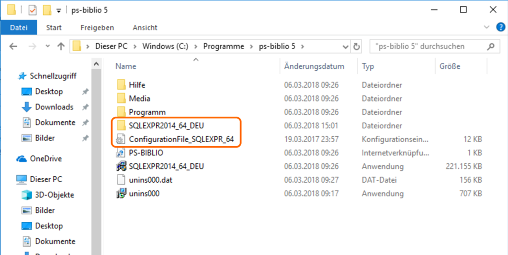 Im nächsten Schritt installiert man SQL Server 2014 auf einem Server. Bei der Installation von PS-BIBLIO wurde der SQL Server in C:\Programme\ps-biblio 5 heruntergeladen. Dort findet sich auch ein Configuration File, mit dem man sicherstellen kann, dass der Server mit den gleichen Einstellungen wie bei der PS-BIBLIO Installation konfiguriert wird.