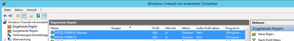 Wenn man die Datenbank auf diesem Weg manuell installiert (und nicht über das Setupprogramm von PS-BIBLIO), muss man die Firewall selber entsprechend anpassen. Dies ist im Dokument “Installation von ps-bliblio im Netzwerk” beschrieben.